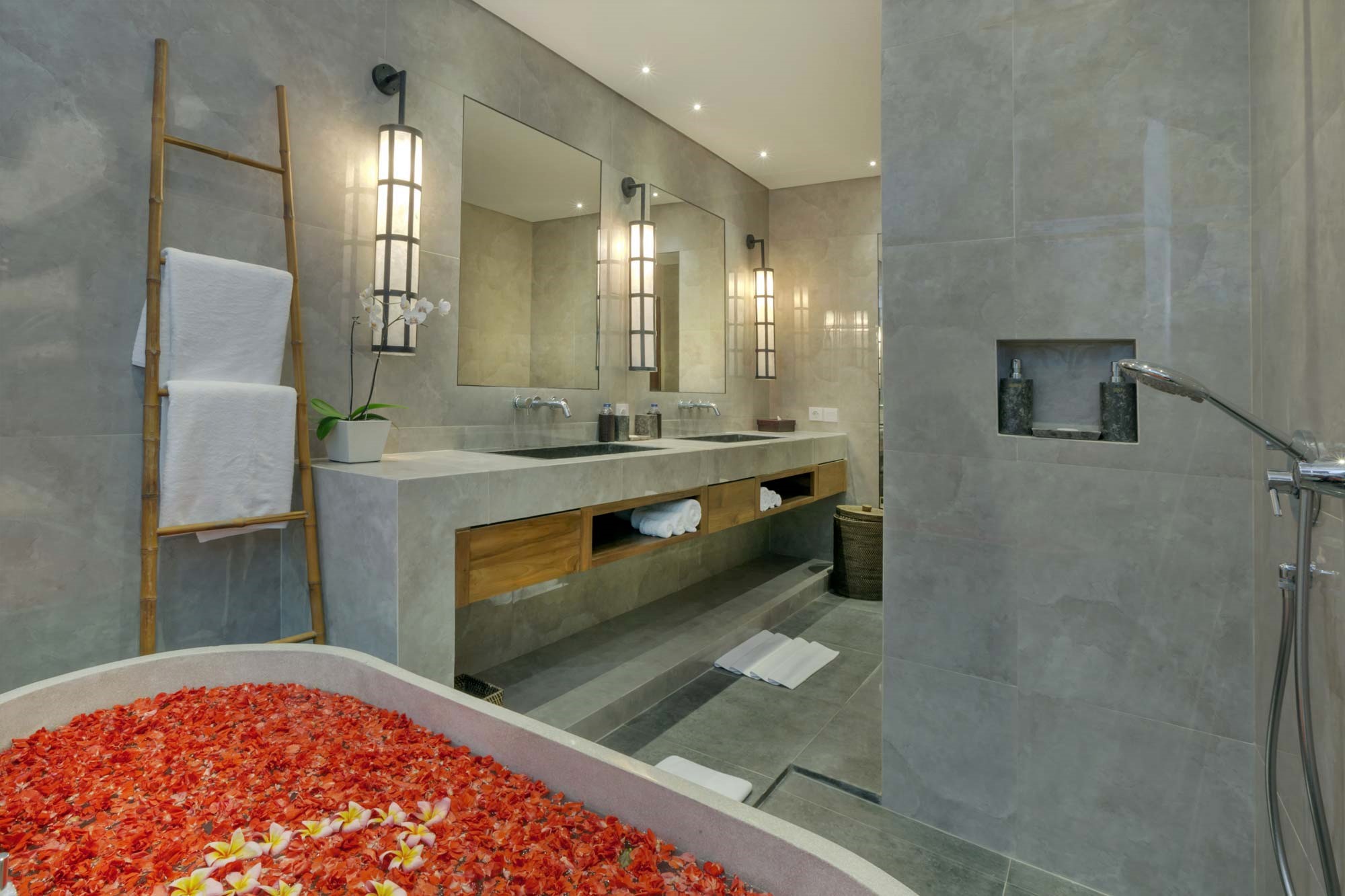 If you cannot settle for anything but the best, look no further! Anam + Tangram 16 bedroom villas offer anything and everything you can think of! The only problem is that you will not have the time to leave the villas and explore Bali. Book a mani pedi at the spa, watch your favourite Netflix series or movie in cinema mode at the home cinema, indulge in a mouth filling barbecue and select the best wine from the wine cellar, challenge your friends to a pool game and then continue for a poker marathon at the card tables. For the sport fanatics, there is a 24/7 gym and roof top lounge area perfect for yoga with stereo and speaker installation.
