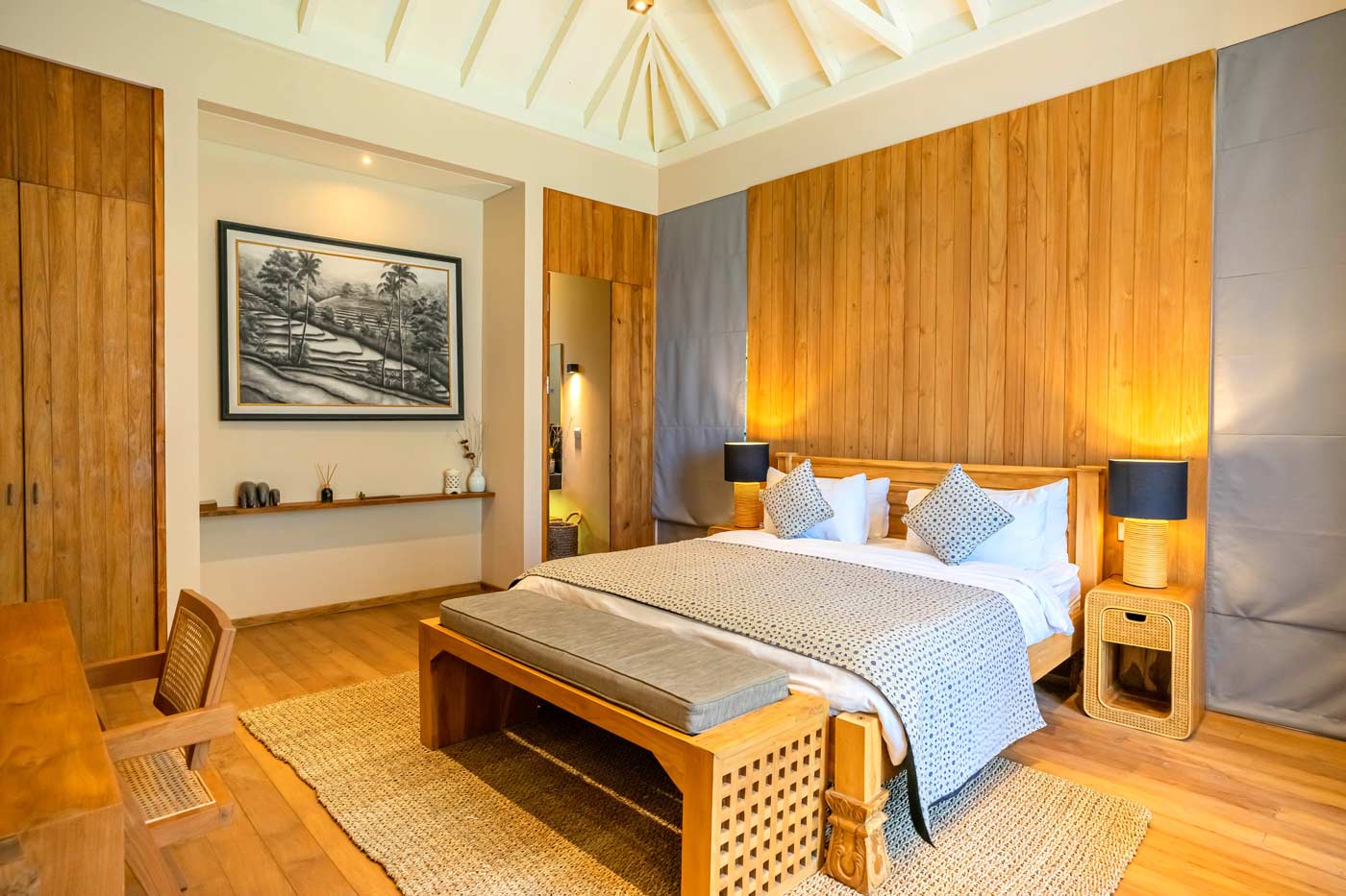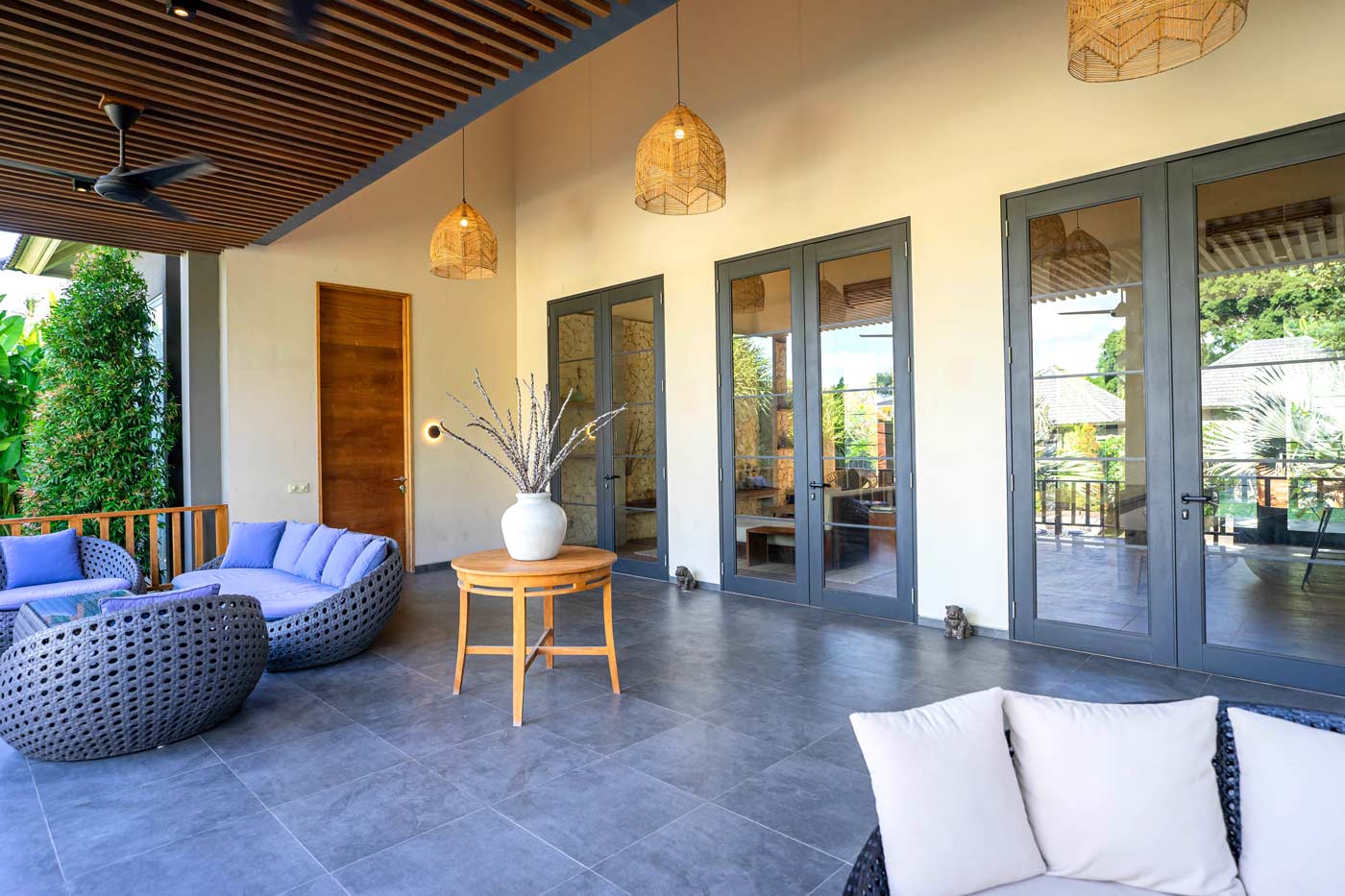 The perfect escape for an extended family or group of friends, 318 Canggu 5 bedroom villa has everything you need and much more. Sun tan on the daybed by the pool, chill on one of the two terraces, enjoy a sunset drink with friends and family in the pool club lounge, or sit comfortably in the indoor air-conditioned media lounge and listen to your favourite tunes. The choice is yours.