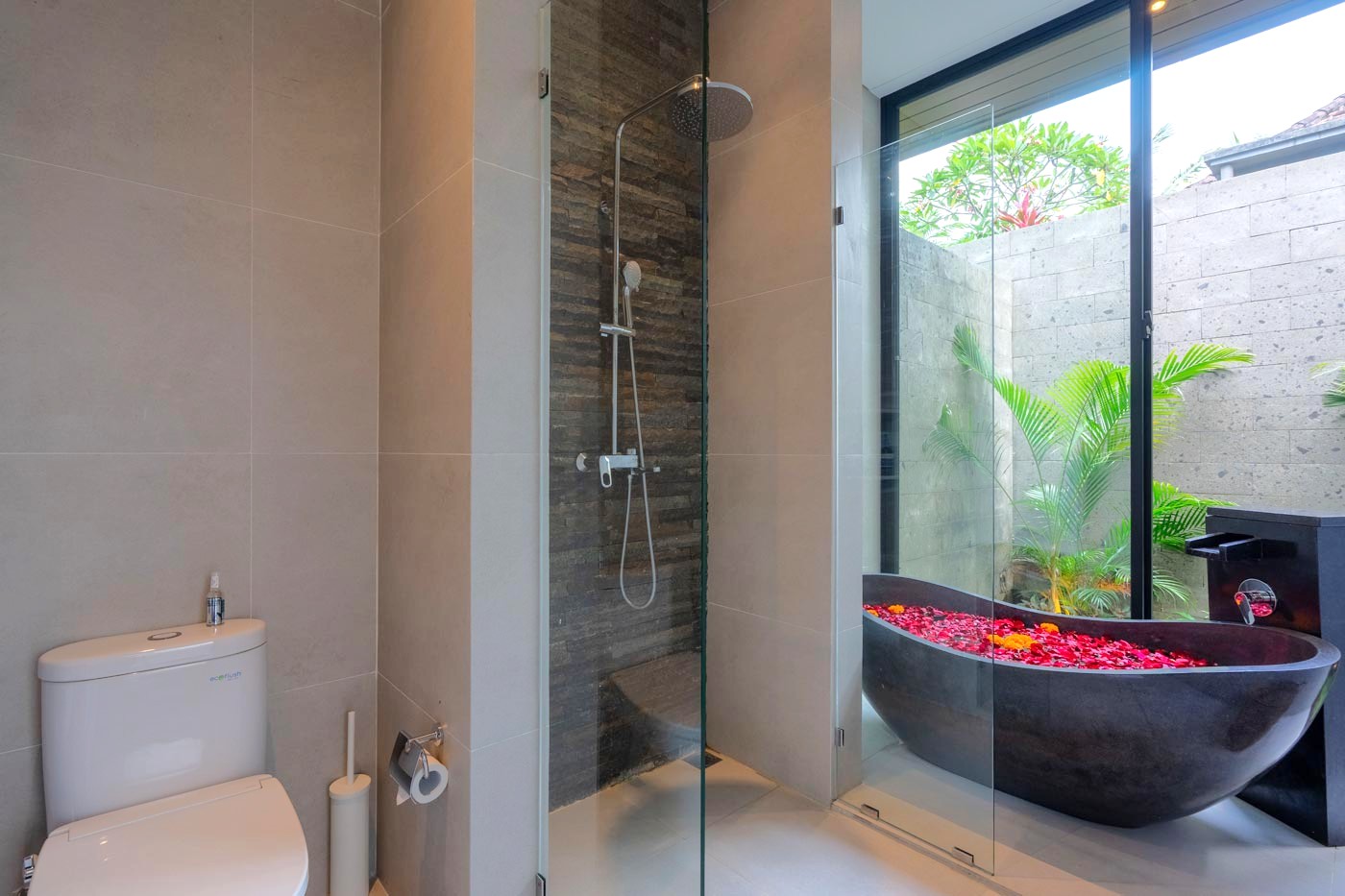 Inside, the villa is packed with comforts. It has a large TV with Netflix, a Nespresso machine to enjoy your morning latte and Sensatia toiletries in all en-suite luxury bathrooms. Did we mention all bedrooms are all air conditioned, have smart TVs with Netflix, king size beds, closets and deposit boxes, while the bathrooms feature bathtubs and showers?