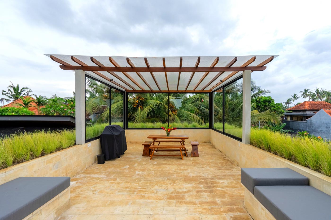 And the fun doesn’t stop there. Head up to the rooftop terrace for a barbecue with rice-field views . It’ll be the kind of place where everyone lingers a little longer than planned. Down in the garden, the huge grassy area gives you plenty of space to roll out yoga mats, host a celebration, or even plan something as special as a small wedding event.