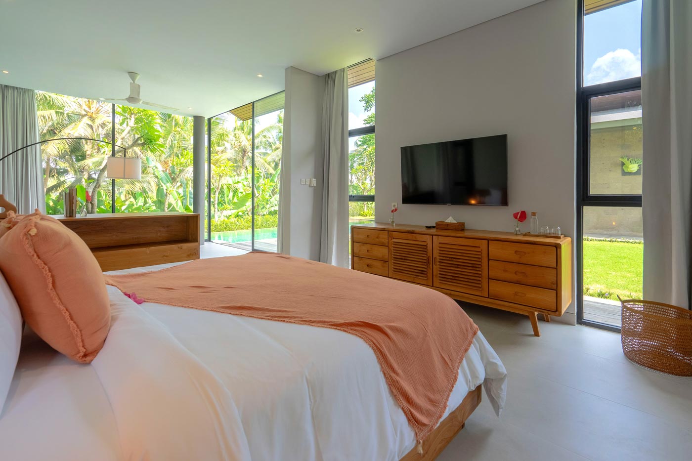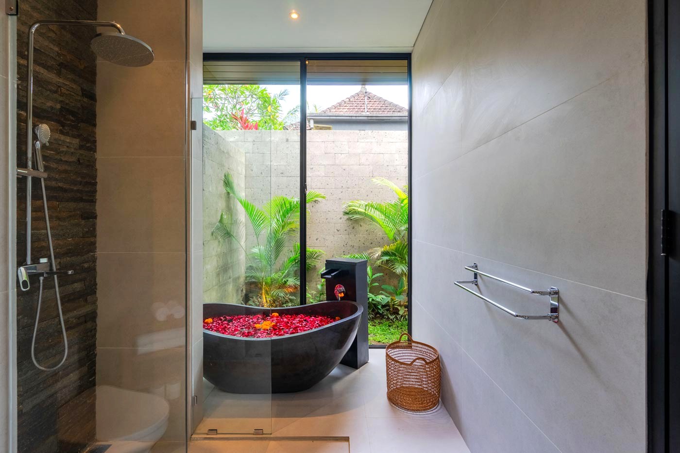 The location is pretty unbeatable too. Just 30 minutes from Ubud’s temples, shrines, art, dance, bars, and restaurants. And yet, it’s  surprisingly peaceful. Right nearby, you’ll find waterfalls and canyons to explore and long stretches of black-sand beach perfect for an early morning stroll. If you’re travelling with kids, you’ll love how close you are to Bali Zoo and Bali Bird Park.