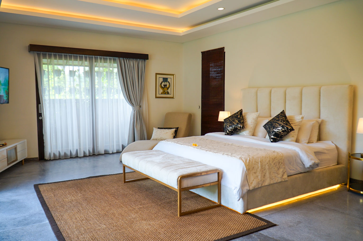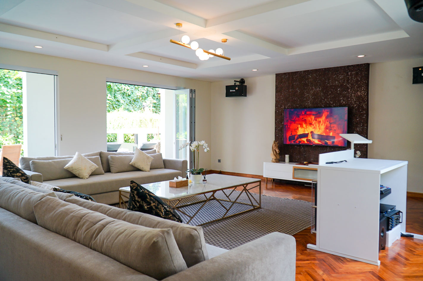 What really sets this villa apart is its entertainment setup. Both villas feature their own soundproof entertainment rooms. Each is fitted with a private bar, smart flat-screen TV with Netflix and satellite channels, home cinema, and a full sound system. There’s also a karaoke room in each villa. This can double as an extra indoor living space when the group wants to slow things down. And for those who want to take the night up a notch, Cassia’s entertainment area can be upgraded with DJ equipment, disco lights, and even a live DJ on request.