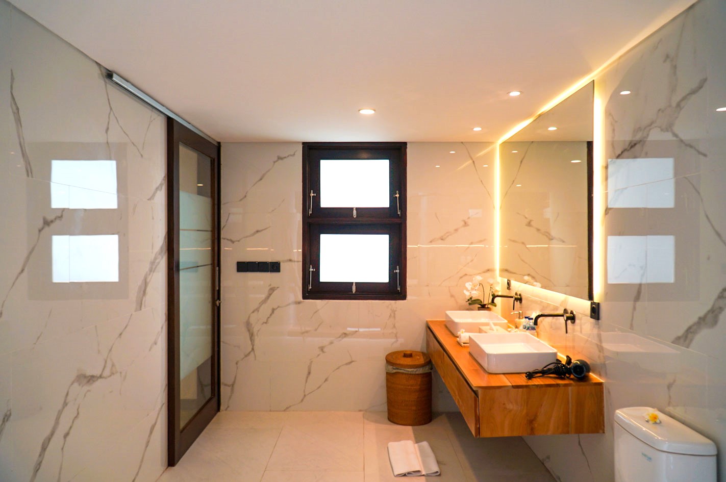 The entertainment rooms downstairs have sound proofing, private bar, smart flat screen TVs with Netflix and satellite channels, a sound system and home cinema. There is also DJ equipment that can be rented at 1.5mn IDR.