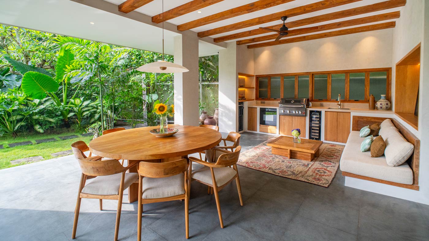 We’ve fallen in love with this newly built light filled 5 bedroom retreat, spread over 1.000 sqm. We think you will too. Miguelito 5 bedroom villa is a thoughtfully designed villa that blends natural materials and a stunning riverside setting to create a richly calming space. It’s also just a short hop to boho Batu Bolong beach. This villa is the perfect choice for your family or your friends to enjoy a relaxing, convivial break in luxury.