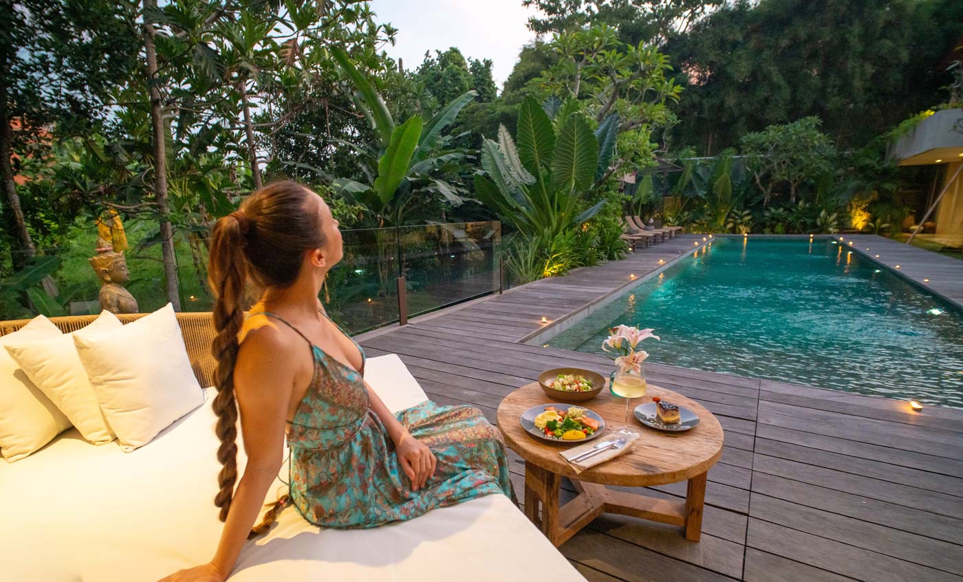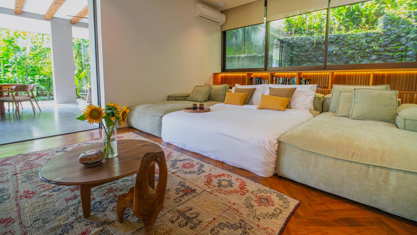 This villa really gives you a sense of immersion in nature but you’re not isolated here. When you’re ready to explore, Batu Bolong beach, with all its bars and cafes, is only a few minutes away by bike. Heaven.