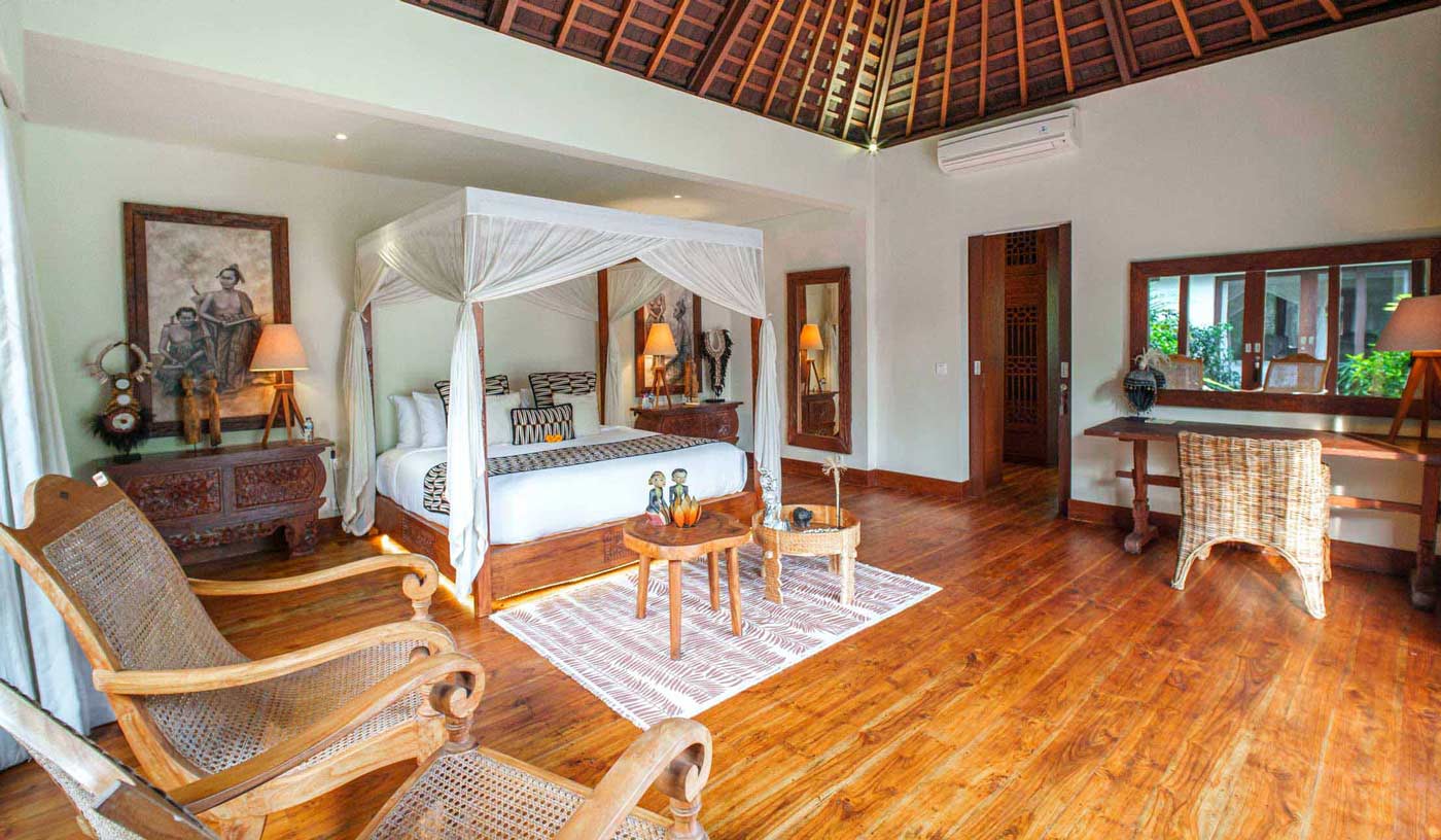 Built for groups of up to 8 guests, the villa features four standalone bungalow-style bedrooms, each designed with comfort in mind. Every suite includes a king-size bed, private living area, workspace, walk-in wardrobe and ensuite bathroom. The two master bedrooms take things further with their own plunge pools, creating quiet retreats within a layout that still brings everyone together with ease.