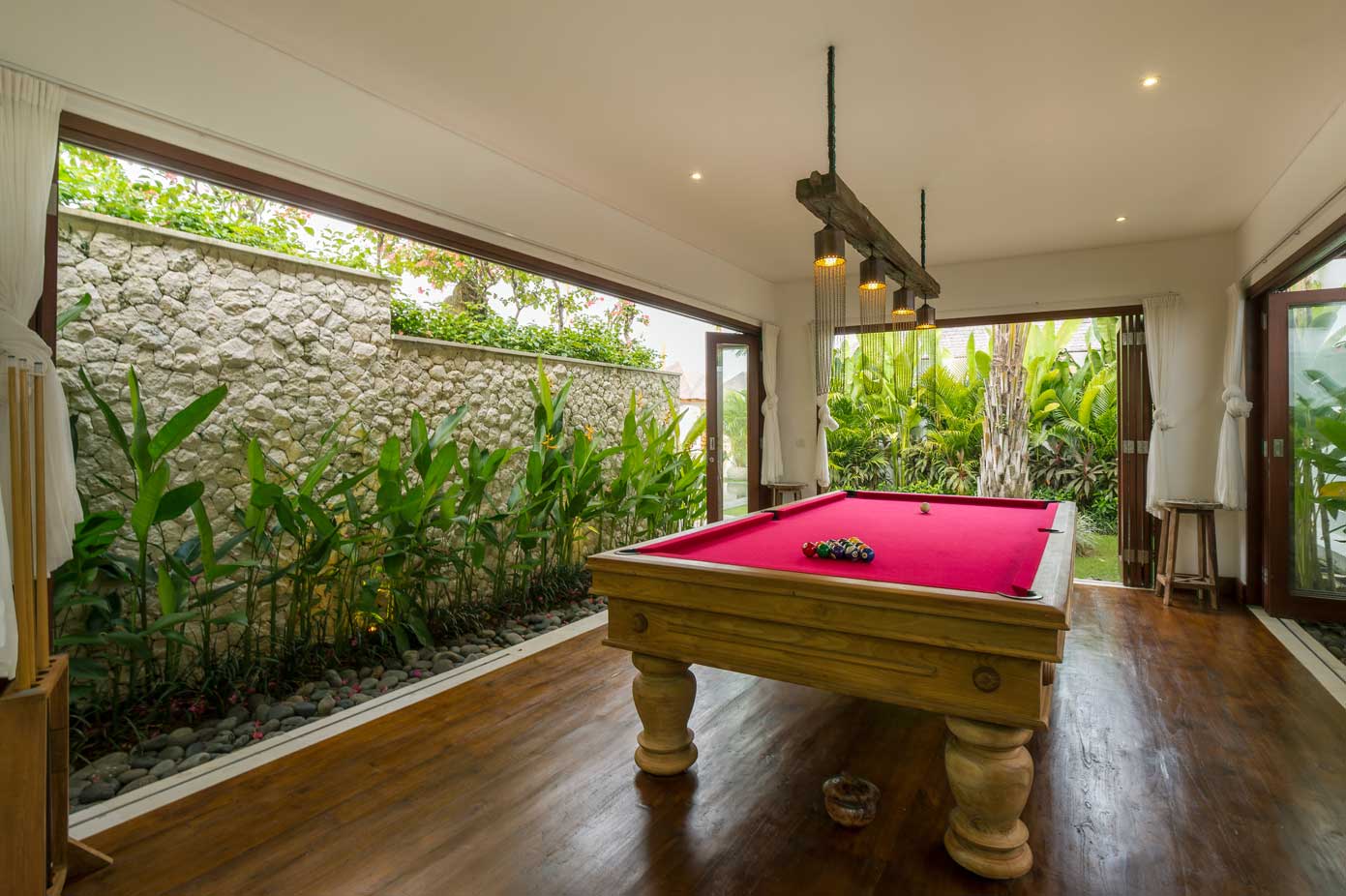 Imagine your very own 25m semi Olympic pool, pool table, air conditioned gym, home cinema room with Netflix, barbecue pavilion with traditional oven and yoga space in the grass area at the back, en-suite bathrooms with plunge pools and all this luxury spread over 2.600 sqm. Stop imagining! This level of opulence in a villa does exist in Umalas! Naty 6 bedroom villa is one click away from becoming your private paradise in Bali!