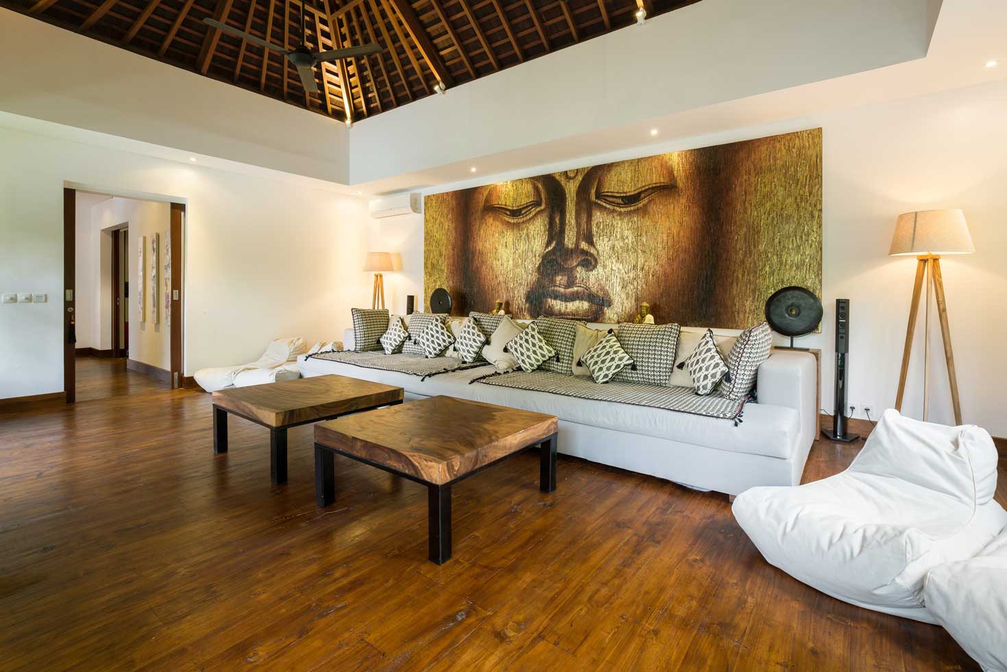 Perfect for a large group of up to twelve people, the six bedrooms are separate bungalows with all the luxury you can dream of including private living room area, office space, walk in closet and of course en-suite bathrooms. If you choose one of the two master bedrooms, wait for a fancy surprise: there is a plunge pool in the en-suite bathroom for some private me-time! Four of the bedroom suites have king size beds, while the other two twin bedrooms can also be converted into king size beds.