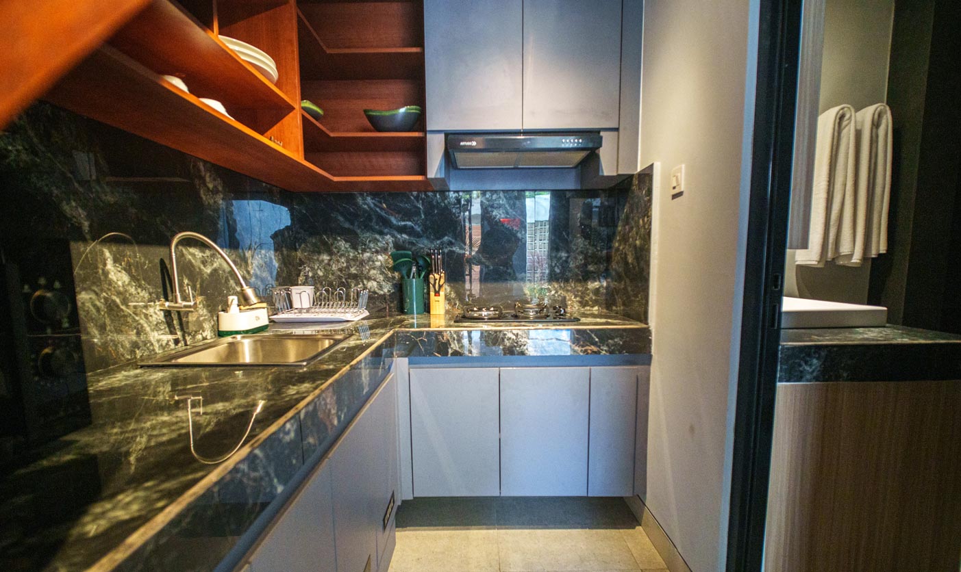 New Moon 1 bedroom loft villa, our brand new 1 bedroom villa – and by brand new we mean that the villa was built in November 2024 – is the dream villa of any digital nomad. Fast reliable internet, complete privacy and no shared facilities. Yes, we’re happy to tell you that the villa has its own plunge pool, as well as living space and a fully equipped kitchenette. Additionally, it has a cute loft with a king size bedroom that comes with some private office space, a smart TV and of course a private bathroom. Needless to say, the space is also fully air conditioned. There is also a security box handy for your valuables.