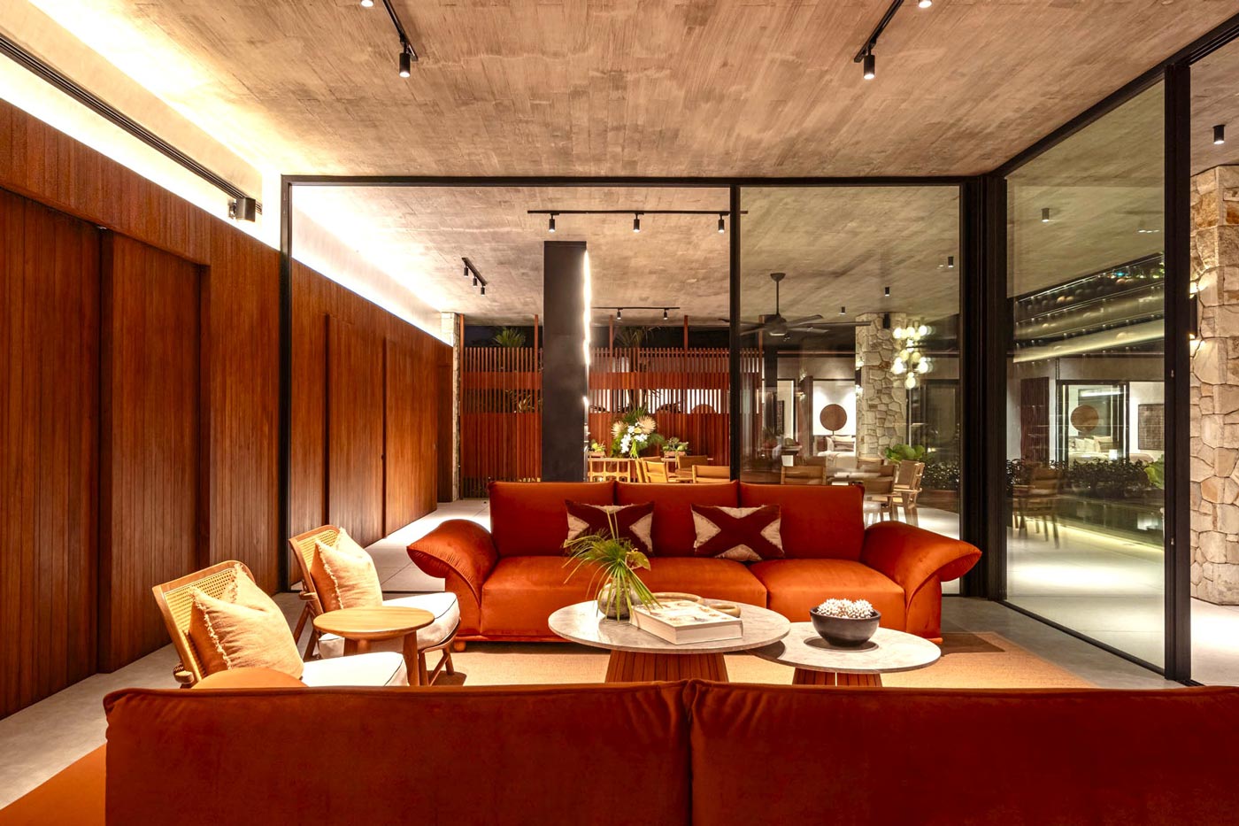 This villa doesn’t separate day and night — it connects them. The indoor space opens straight onto the pool, so everything feels like one continuous area.