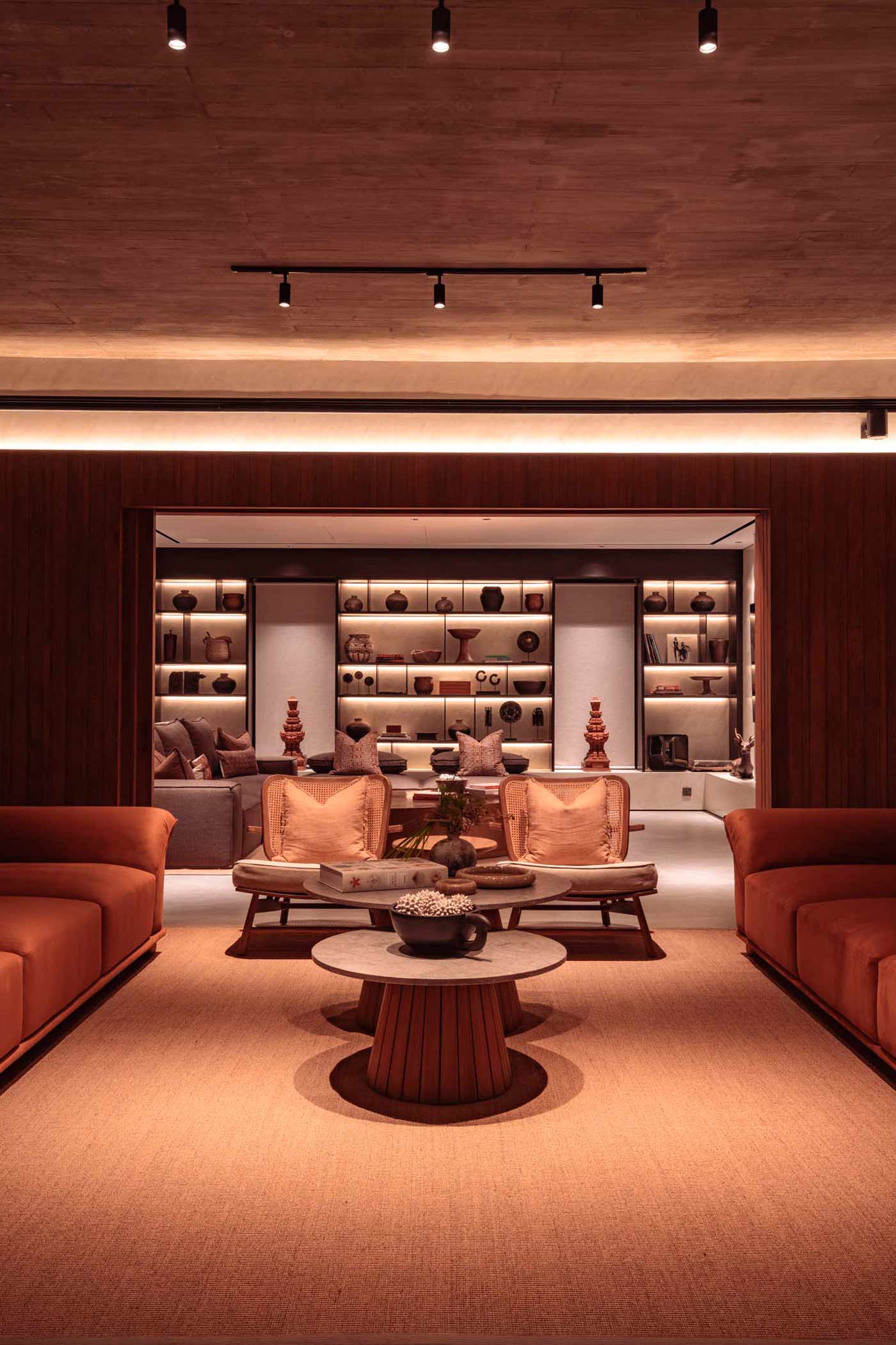 Right next to it, the sunken lounge acts like your own private booth. With the SONOS system running, it becomes the spot for music, conversations, and that steady build from daytime to evening.