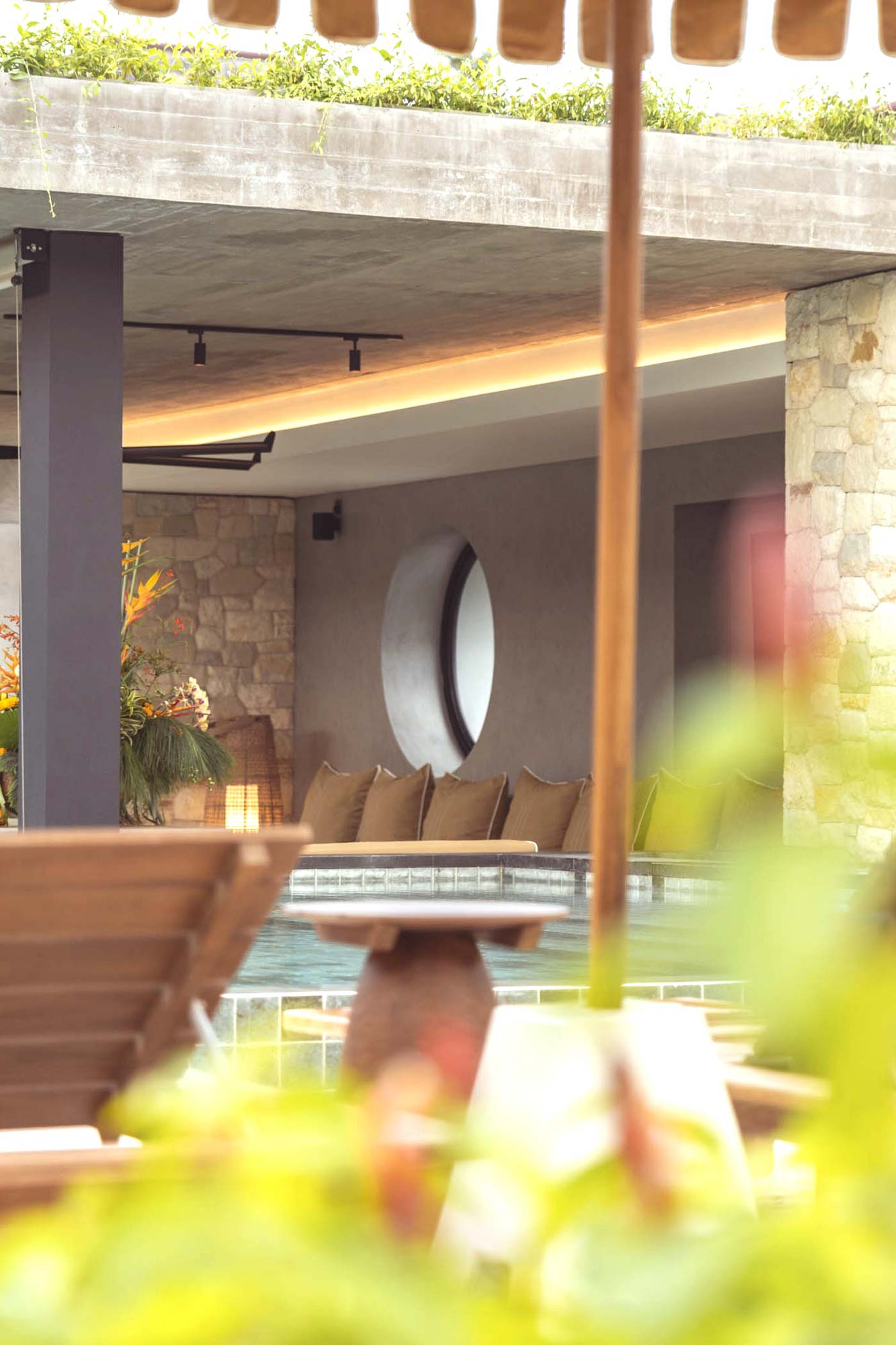 The 15-metre pool is the centre of everything. It’s where the day starts and where most of it stays — swimming, floating, or just hanging out with a drink.