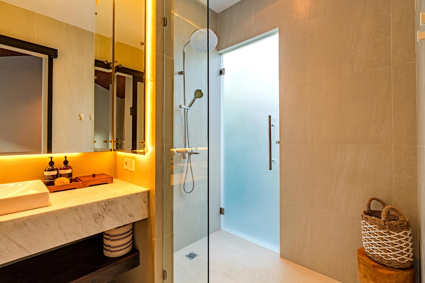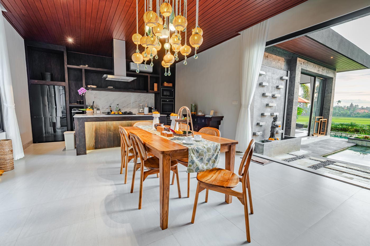 Whichever bedroom you choose, we can guarantee you a good night’s sleep. The master bedroom with its rice field views and direct pool access is our top pick. It has a semi outdoor bath tub for that extra level of pampering. All bedrooms offer air conditioning, king-sized beds, closet space and private bathrooms with walk in showers.