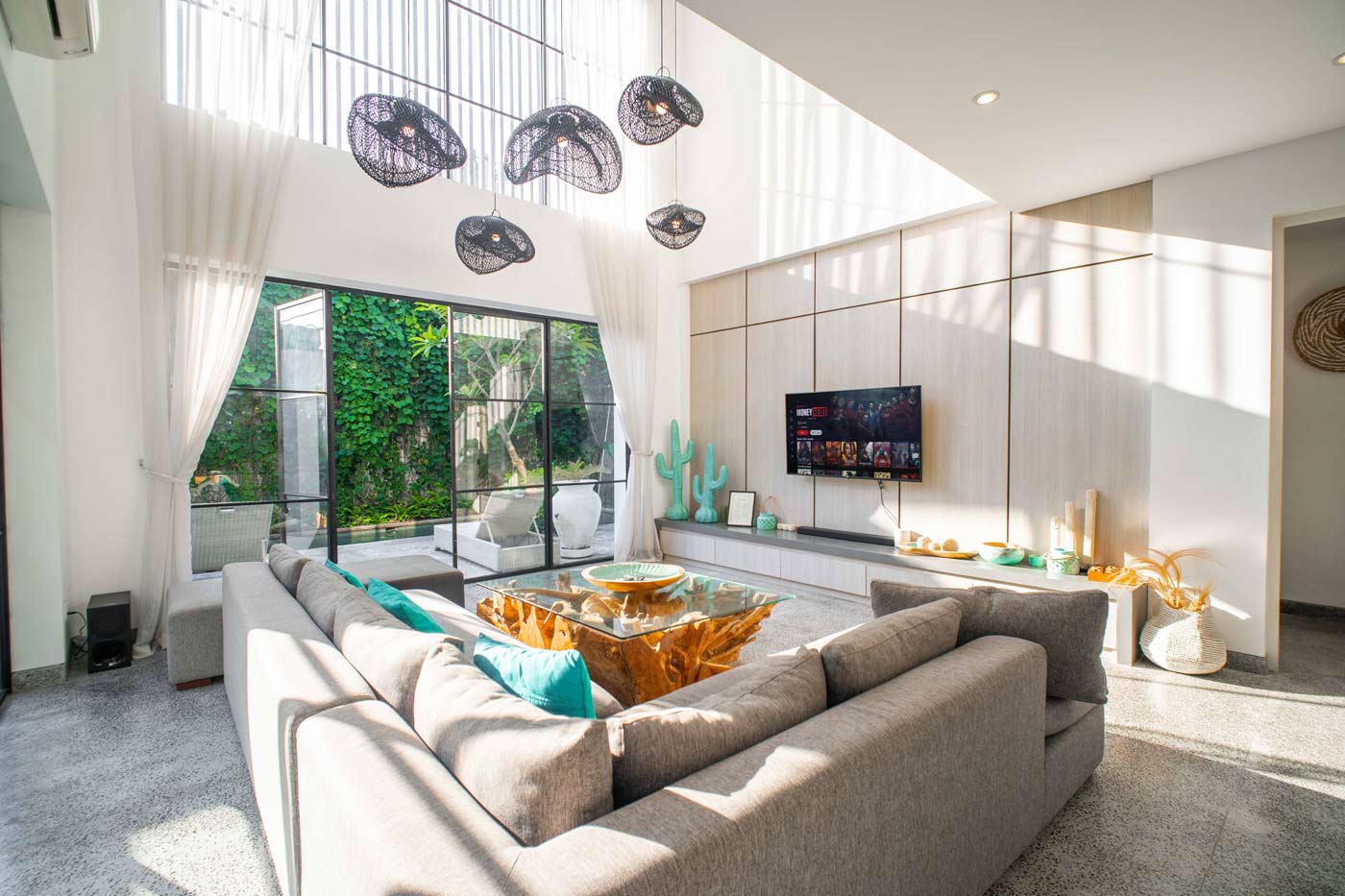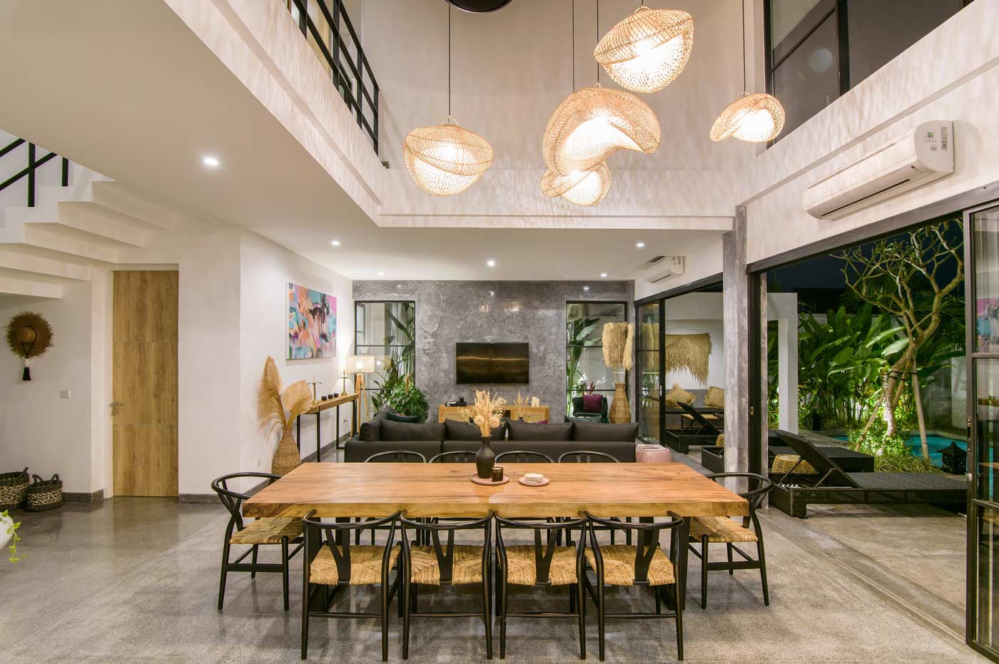 Live it up in Canggu in Soho + Verde 8 bedroom villa complex! These two interconnected four bed villas make up an 8 bedroom listing. Spend all day by the two pools, arrange a bartender and taste the best cocktails Bali has to offer. Book an in-house massage, fill up the bathtub and pamper yourself. At night, order the best pizza from Bottega Italiana and savour it with your friends (if you are more than 10 people you will have to split between two dining areas). Then go explore Canggu’s party scene. Next day repeat all over again.