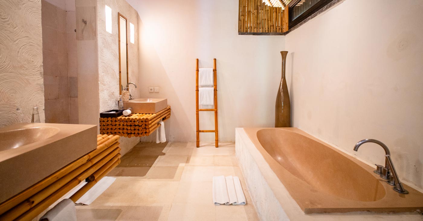 Do select the master bedroom upstairs with its wooden bathtub on the balcony overlooking the beach. Fill the bathtub with bubbles, grab the best wine in the house and spend the sunset in the bathtub with the best ocean view! Do not let anybody bother you until it is time for a candle lit dinner on the grass area mere metres away from the ocean. And at night, the ocean breeze and the comfy beds will guarantee the best night’s sleep so you can press enter and repeat all over again the next day.