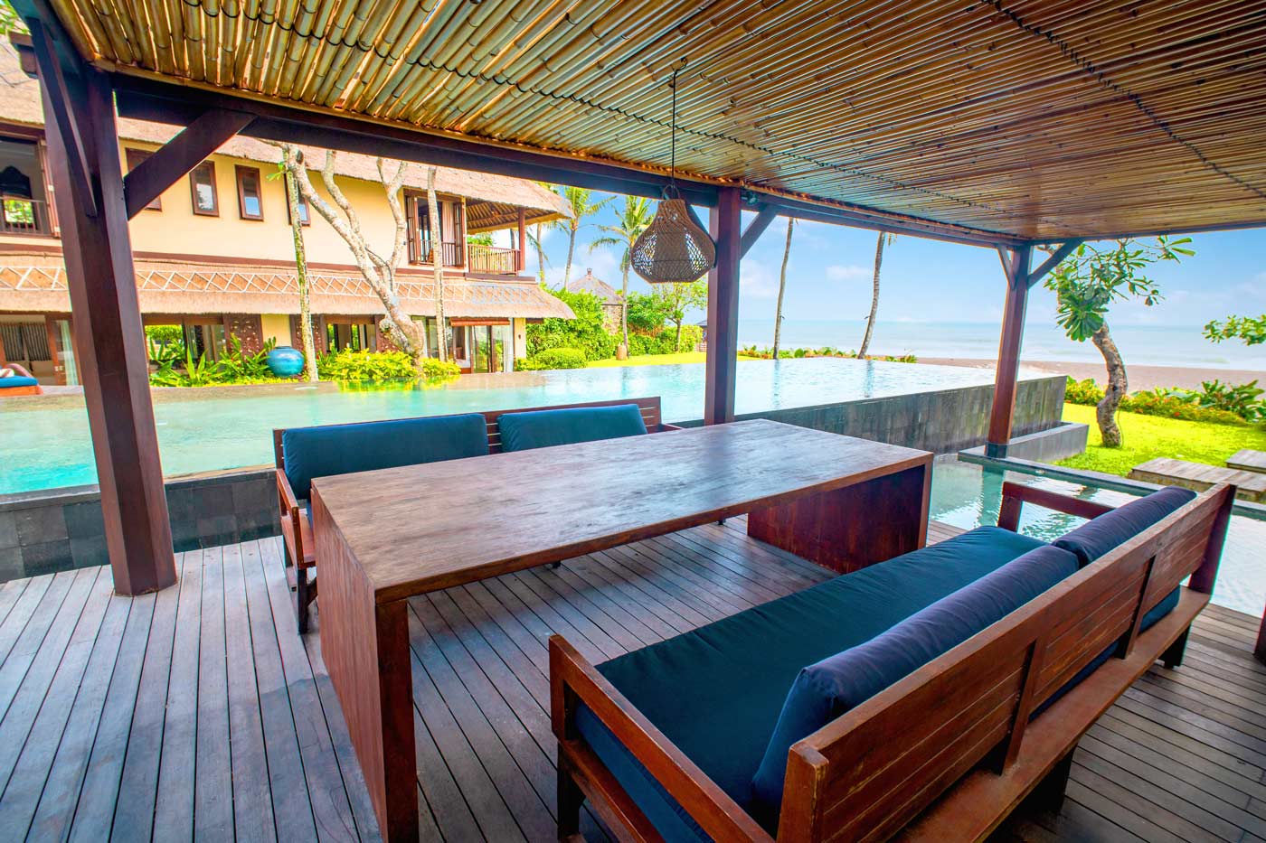 Loyal to its name, Sound of the Sea 6 bedroom villa is exactly that. It’s a villa so close to the sea that you can literally hear the waves crashing on the sand. The villa’s 20m pool, the kids’ pool and jacuzzi (with unheated water) overlook Pereranan beach, which is just steps away from the villa.