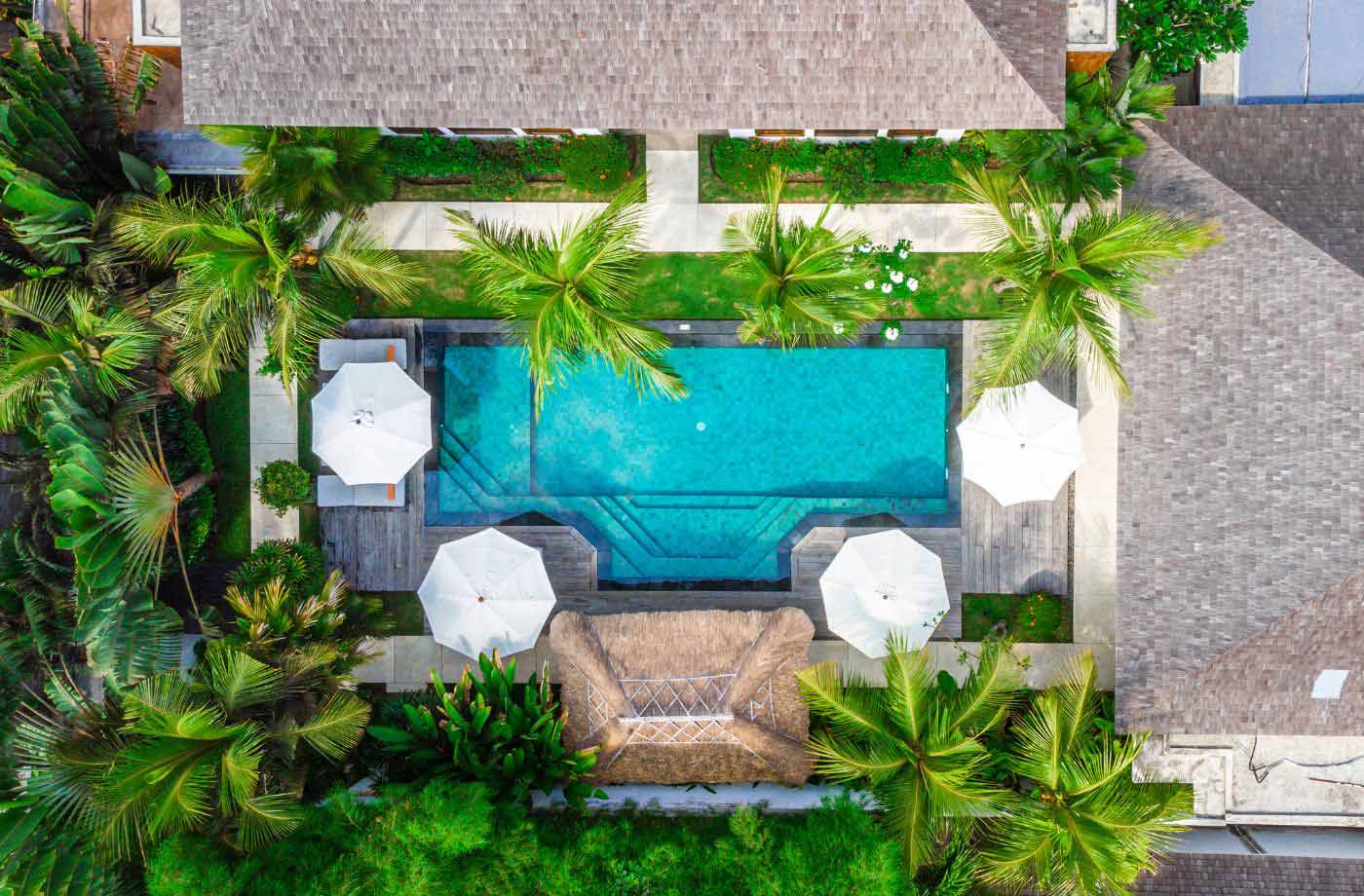 Designed for big groups, Tangram & Abakoi 10 bedroom villa span 1,400 sqm and sleep up to 26 guests in comfort. The combined space features two long swimming pools, relaxed open-air living areas with dining zones, lounges and western-style bars. Plus there’s a full villa team available day and night to meet your every wish. Around the pools, landscaped gardens, sun loungers and traditional Balinese gazebos create the perfect setting for slow days, poolside catch-ups or an in-villa massage.