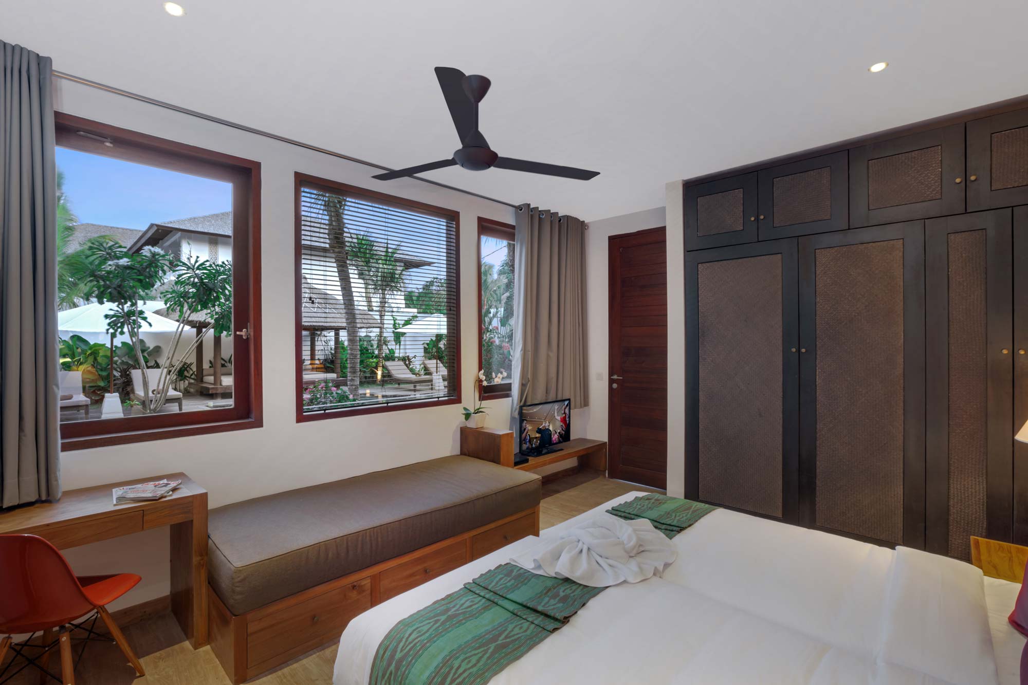 Do not be fooled by the number of bedrooms! Tangram & Abakoi 12 bedroom villa are two interconnected six bed villas (12 bedrooms in total). This is a perfect choice for an extended family. They have two family rooms that each feature two bunk beds and together (the two family rooms alone) can fit up to 10 people. In fact, the one family room is also interconnected with one twin room. In sum, if you are planning to bring along a lot of children, search no further. This is THE best family villa money can buy in the heart of Seminyak.
